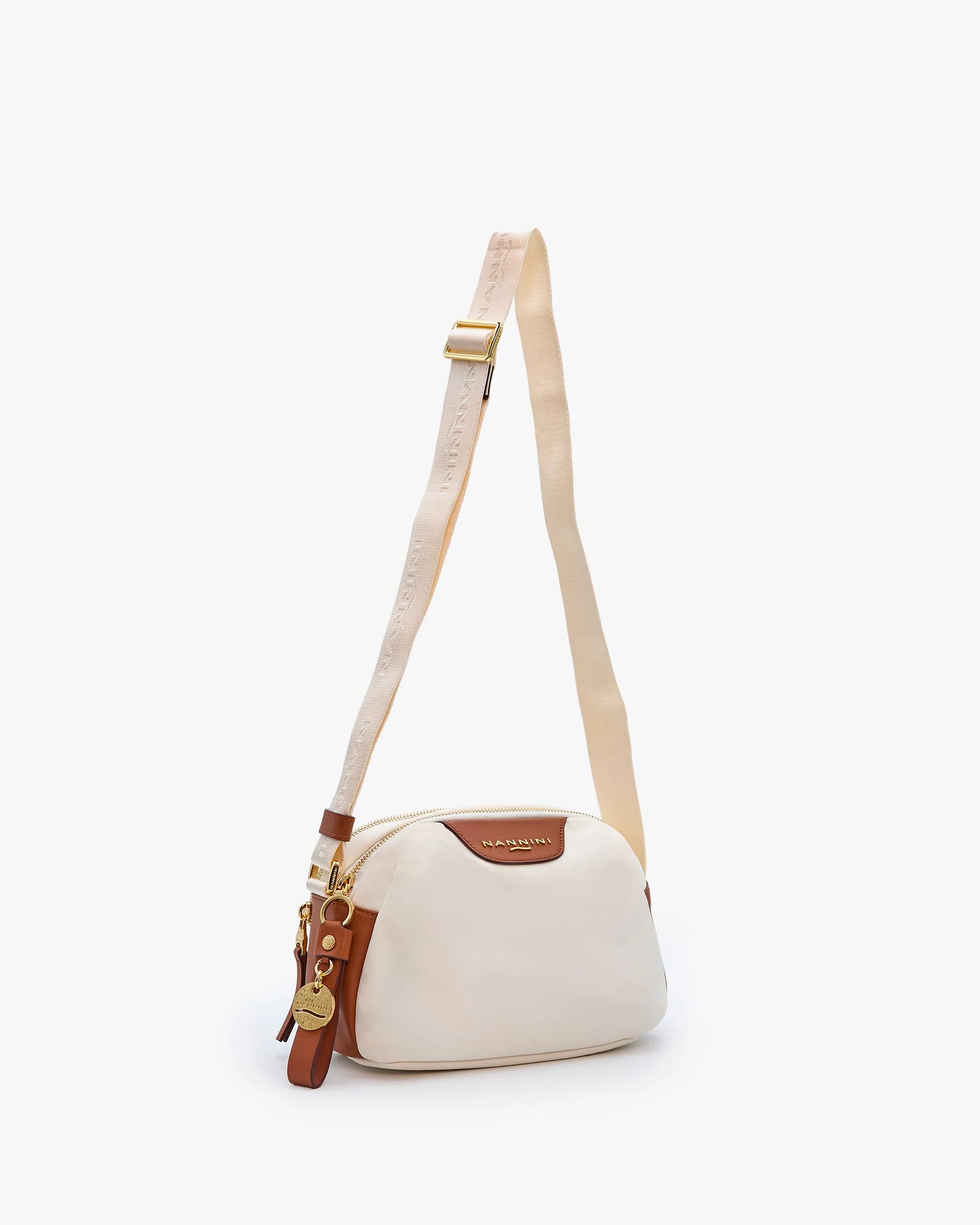 Accessori Curati: Ogni dettaglio è pensato per stupire, dal tiralampo in pelle arricchito da un charm decorativo alla tracolla in tessuto logato, regolabile per una vestibilità sempre perfetta.